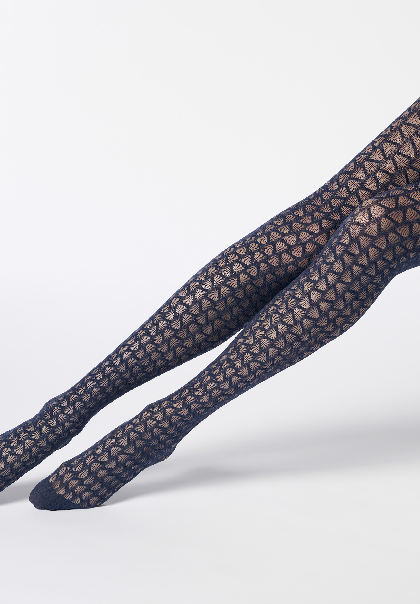 Collants semi-opaques à motif rayé et vague graphique.