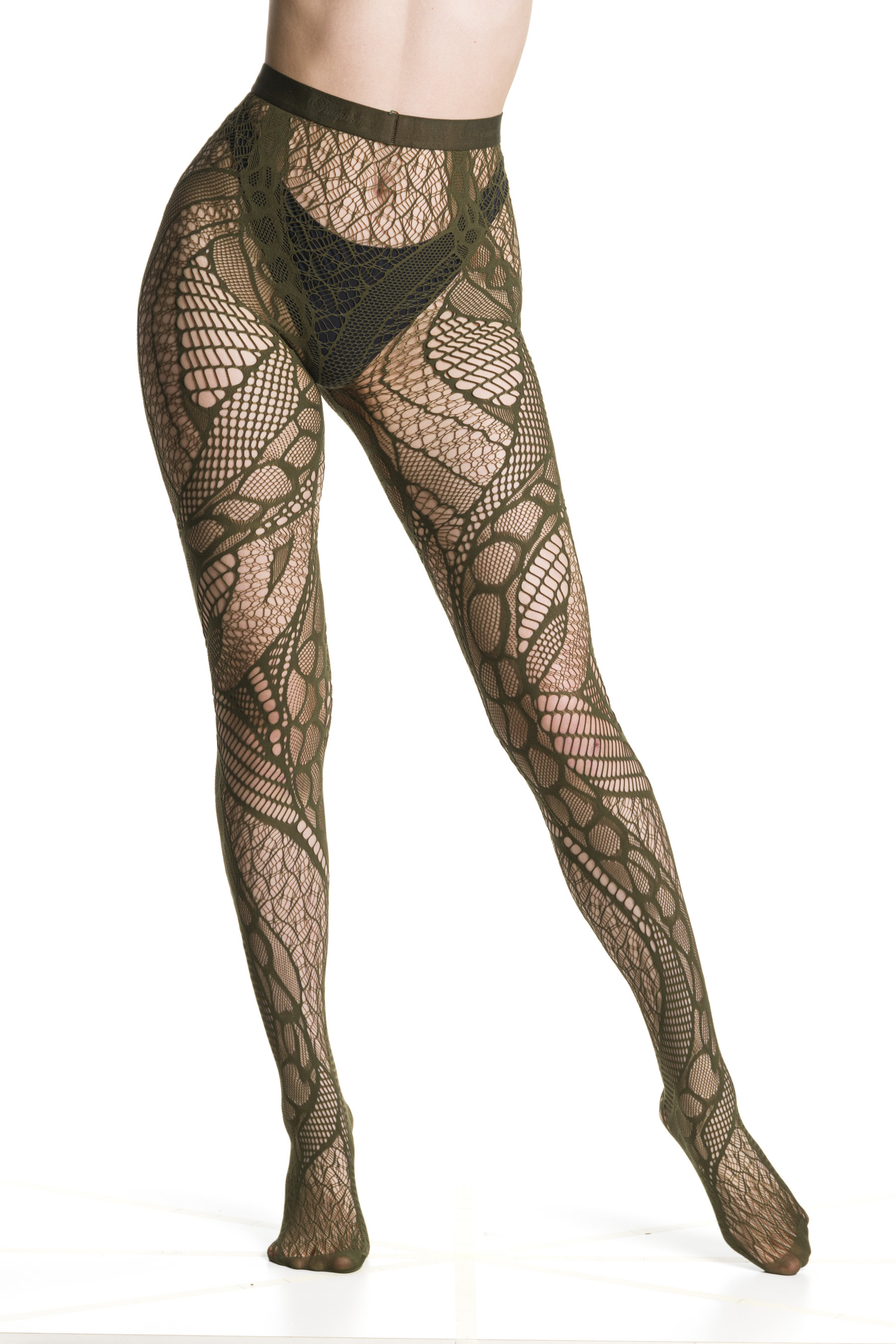 Collant résille sans couture avec un élégant motif patchwork en dentelle.