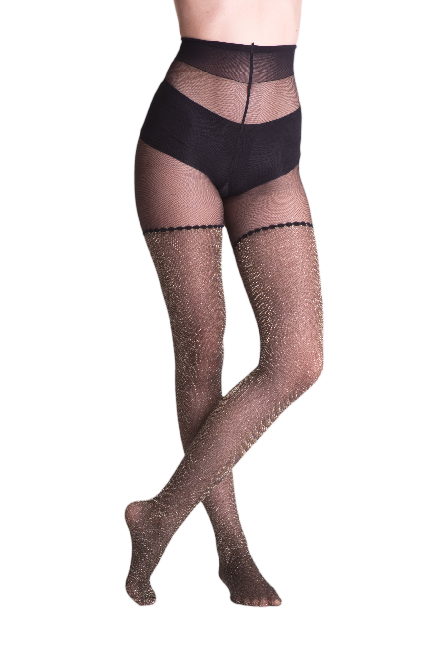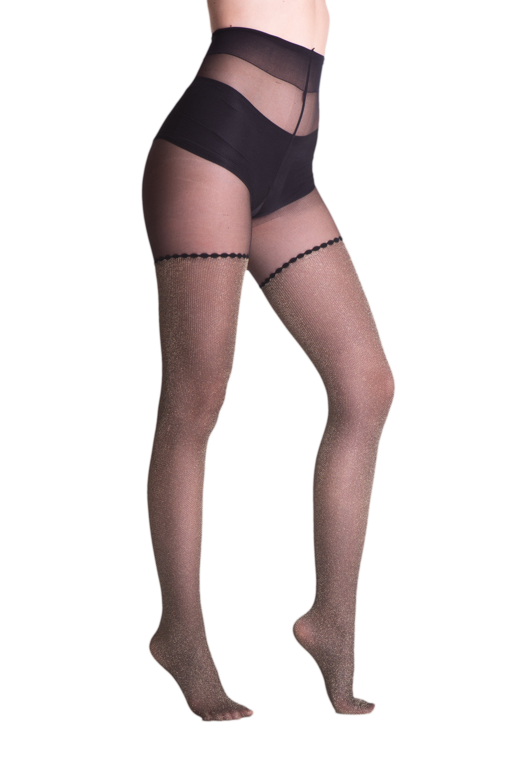 Liens supplémentaires vers "Trasparenze - Collant 40 deniers avec motif bas jarretière en lurex"