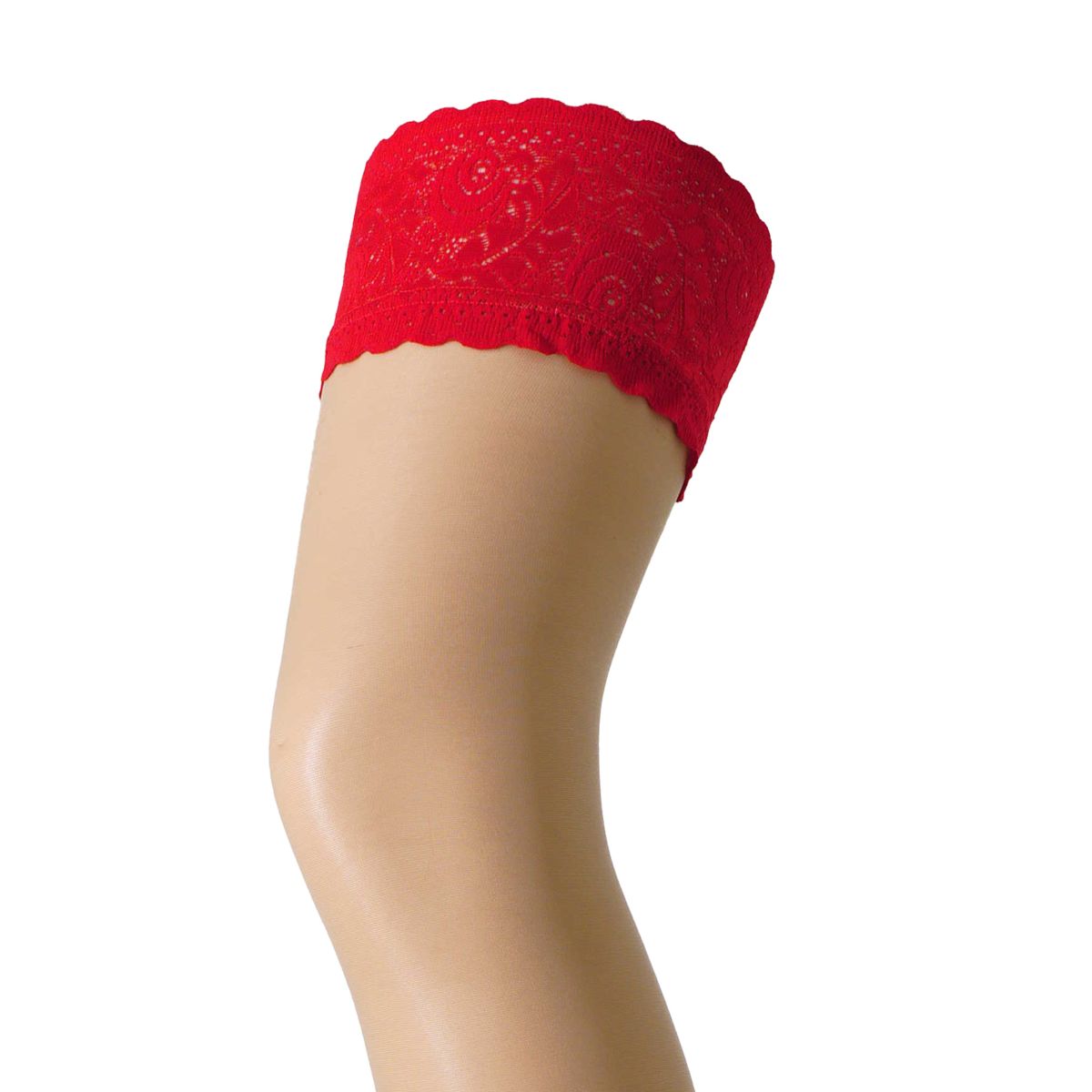 Fiore - Bas autofixants avec un magnifique motif floral en dentelle rouge Nocturne