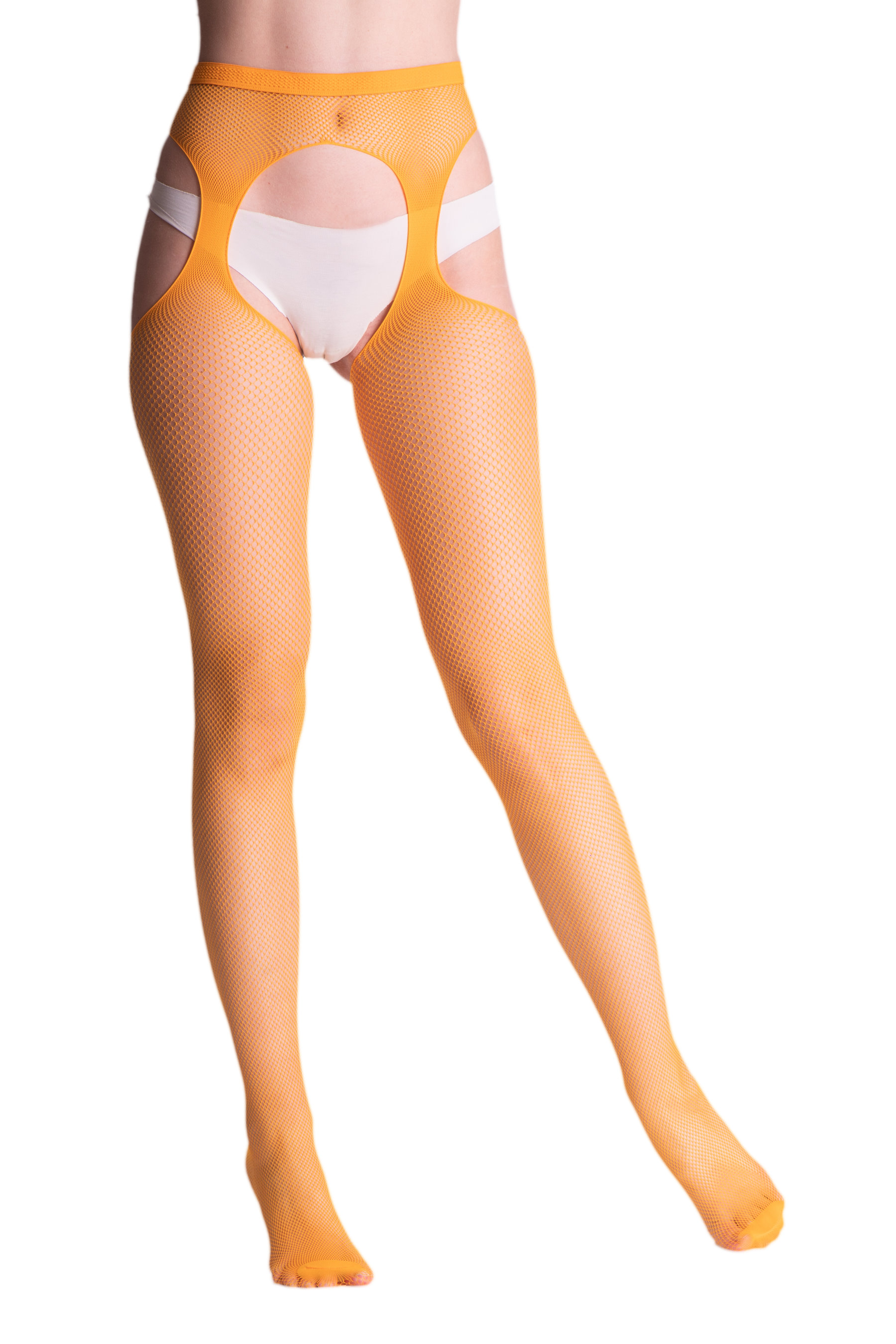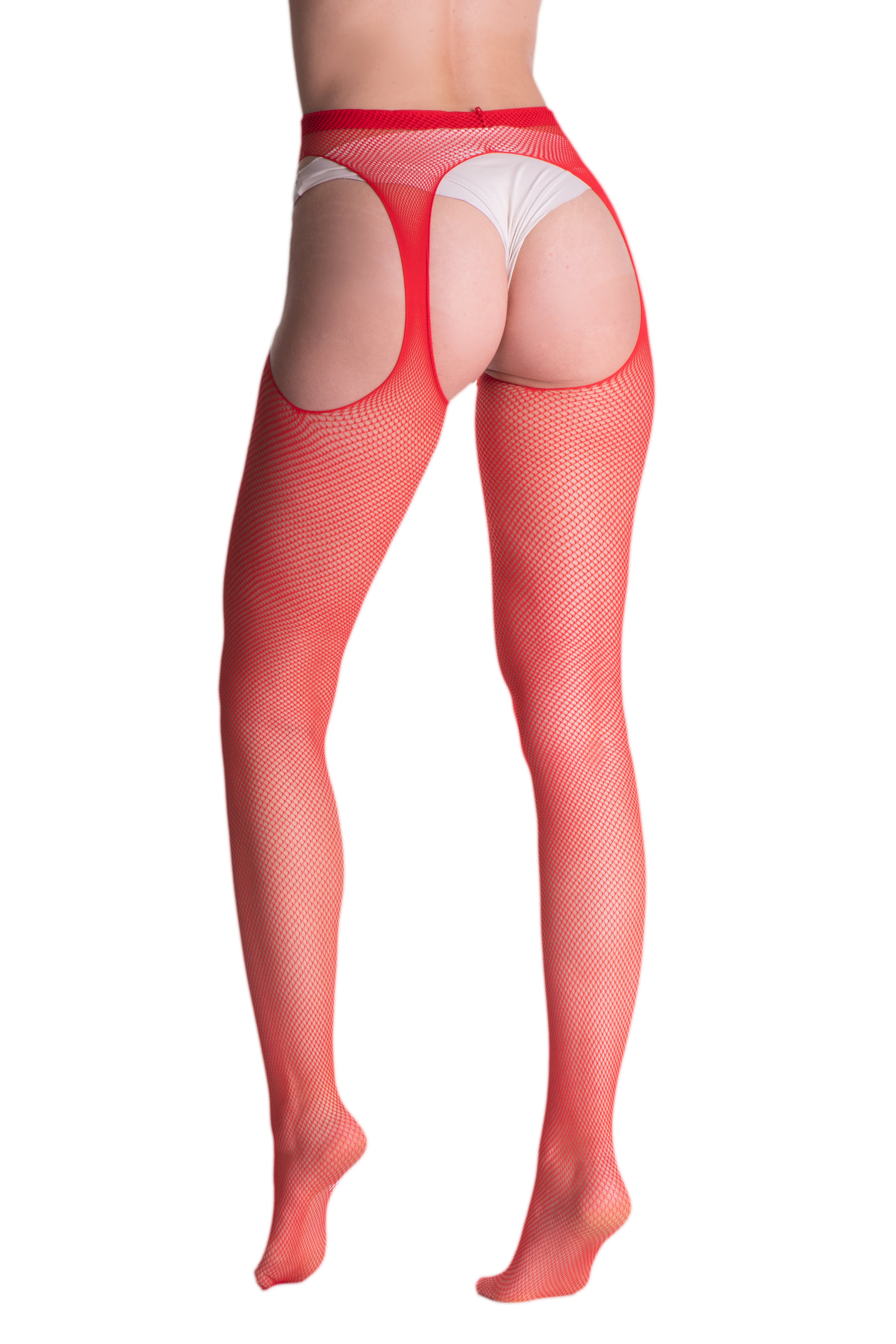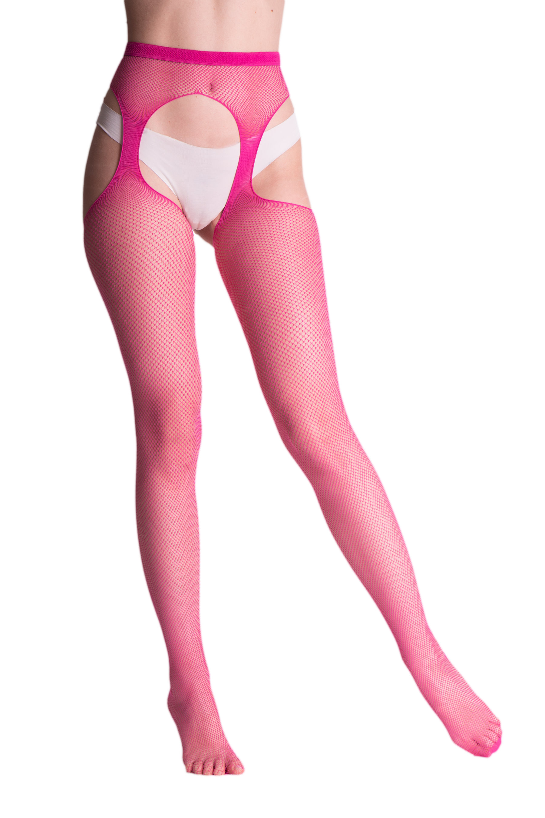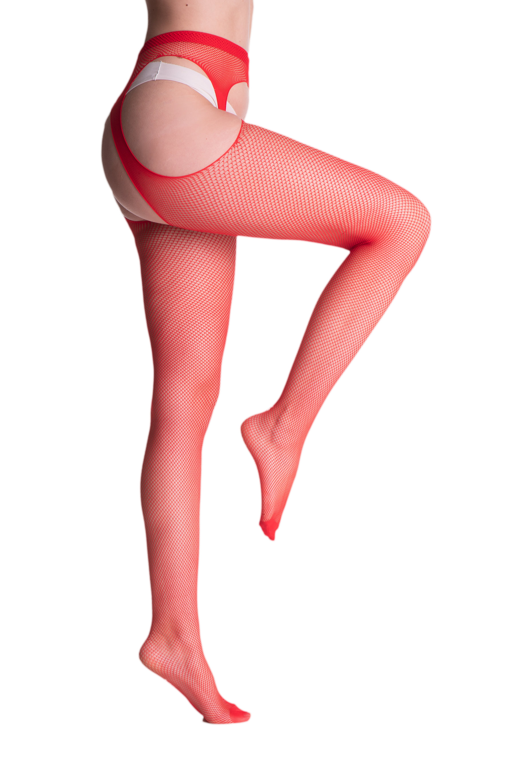 Strip Panty - Un collant résille avec porte-jarretelles incorporé.