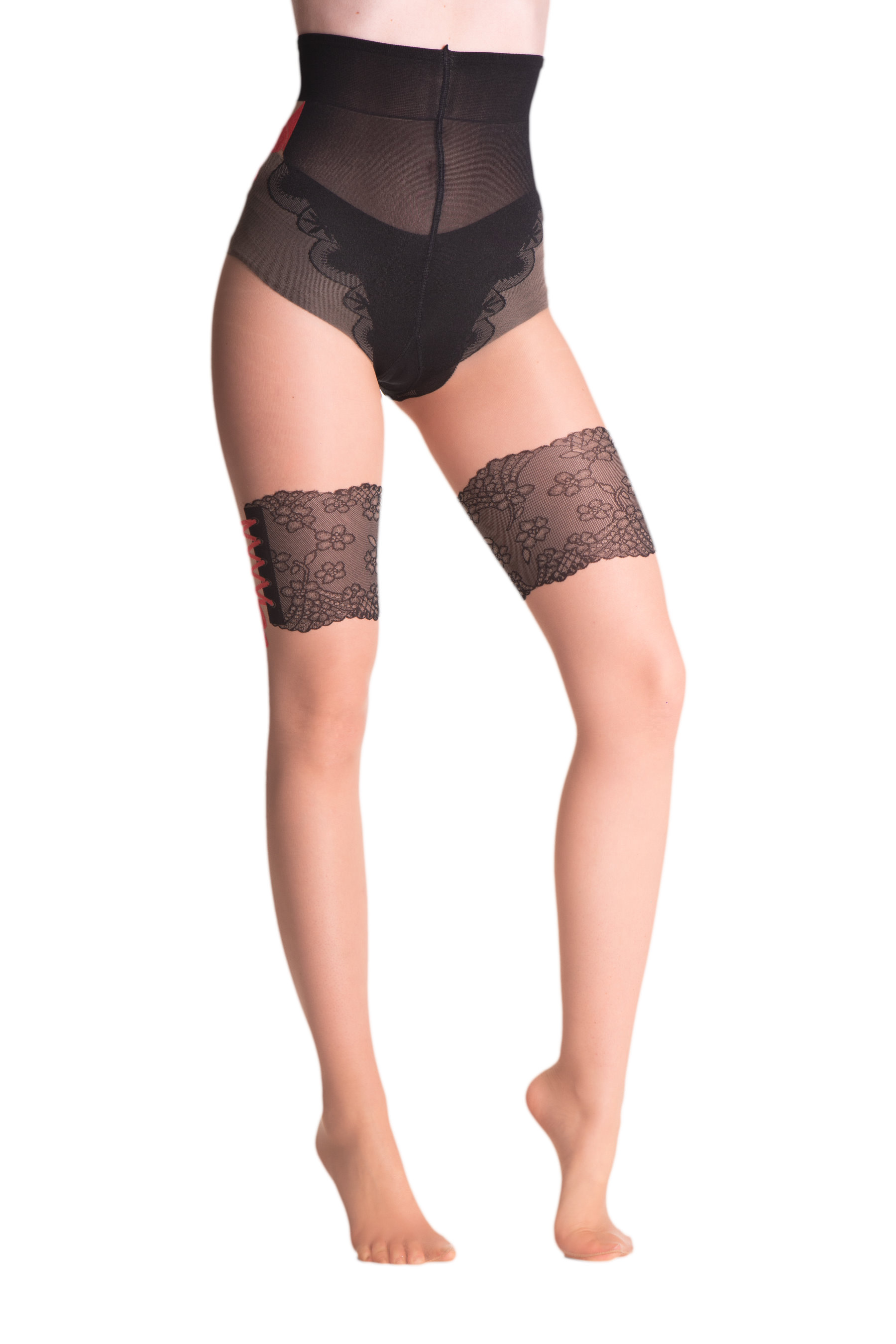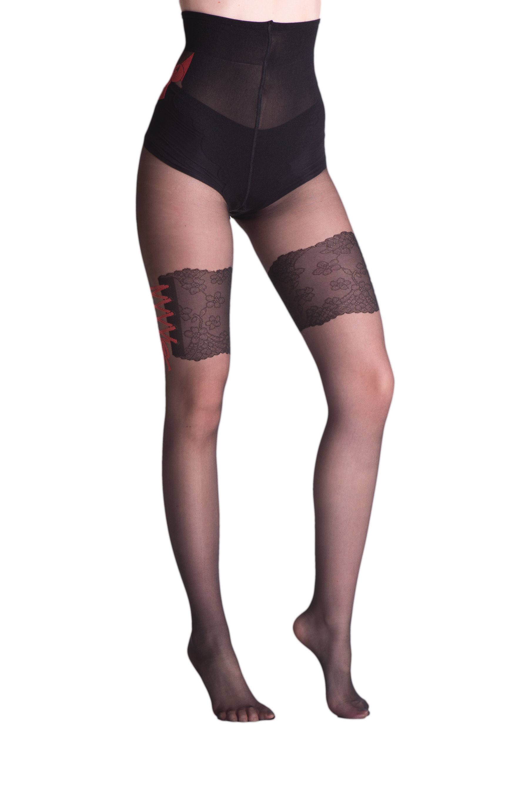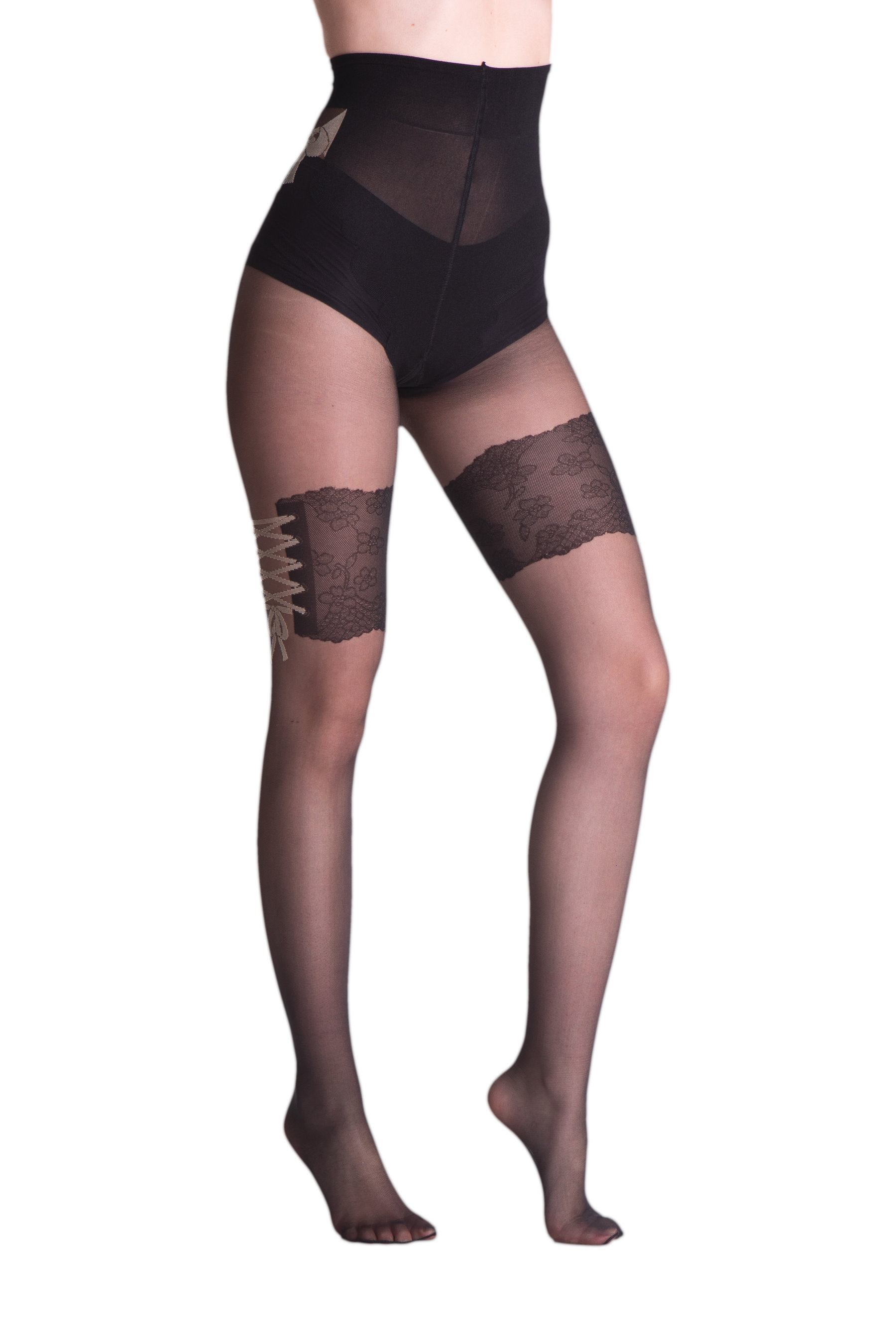 Levante - Sensuous mock hold up tights with polka dot and floral pattern, 20 DEN