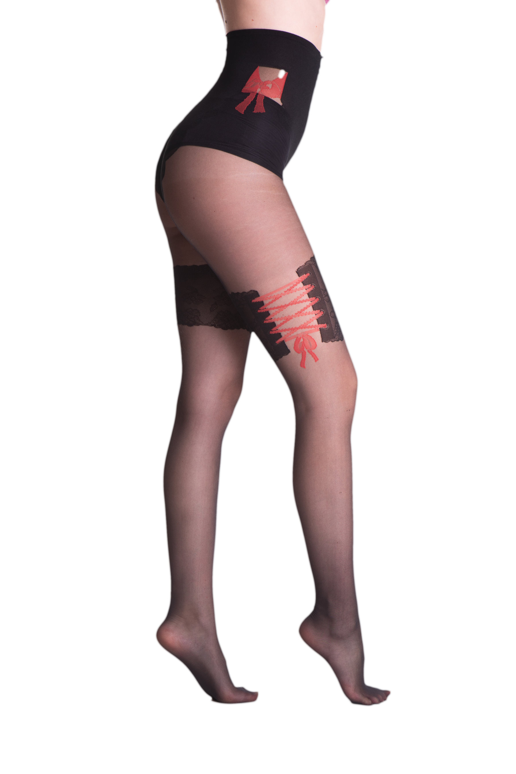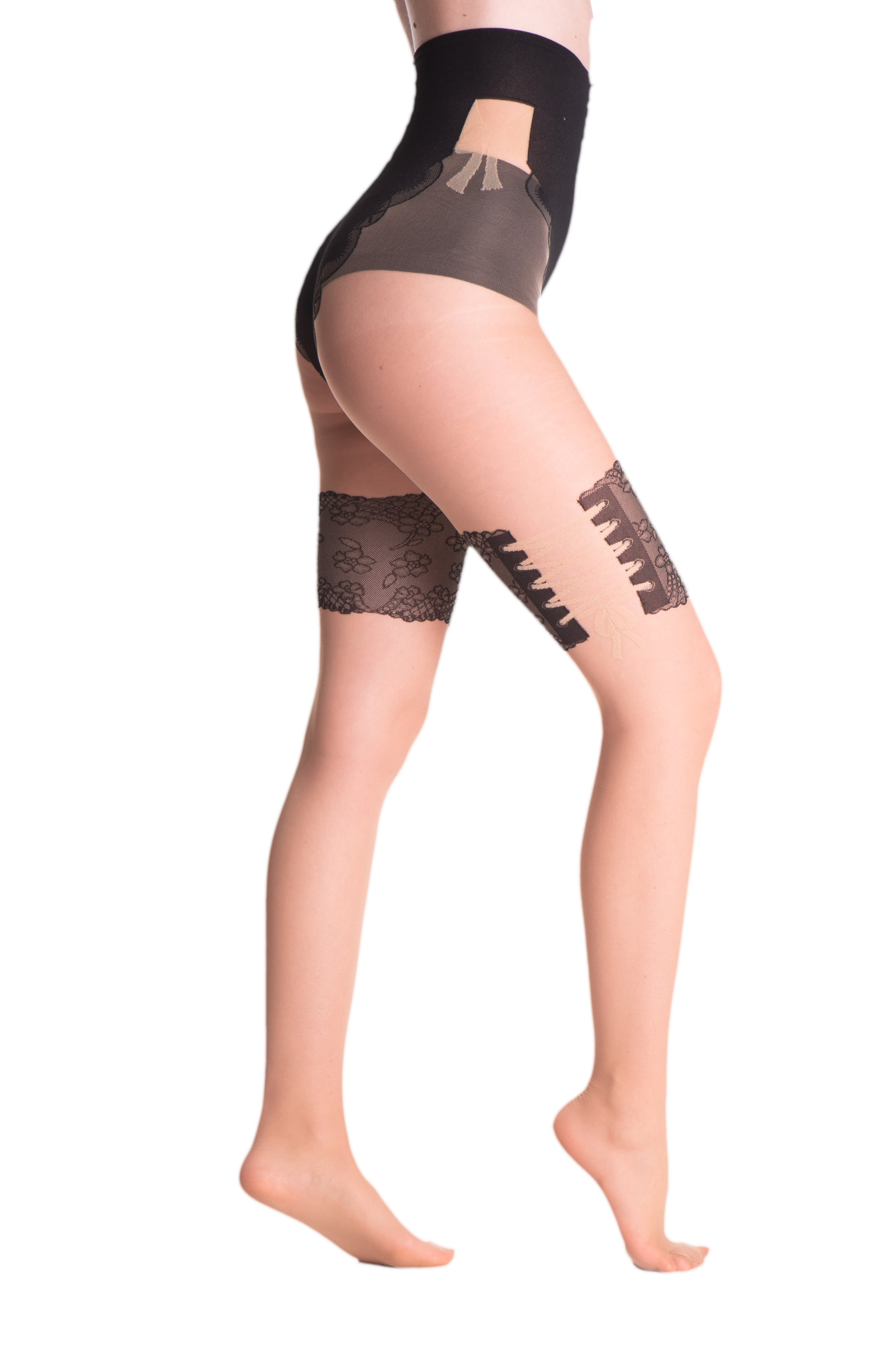 Marilyn - Collants sensuels à motifs Nicolle, 20 DEN, nu avec motif noir